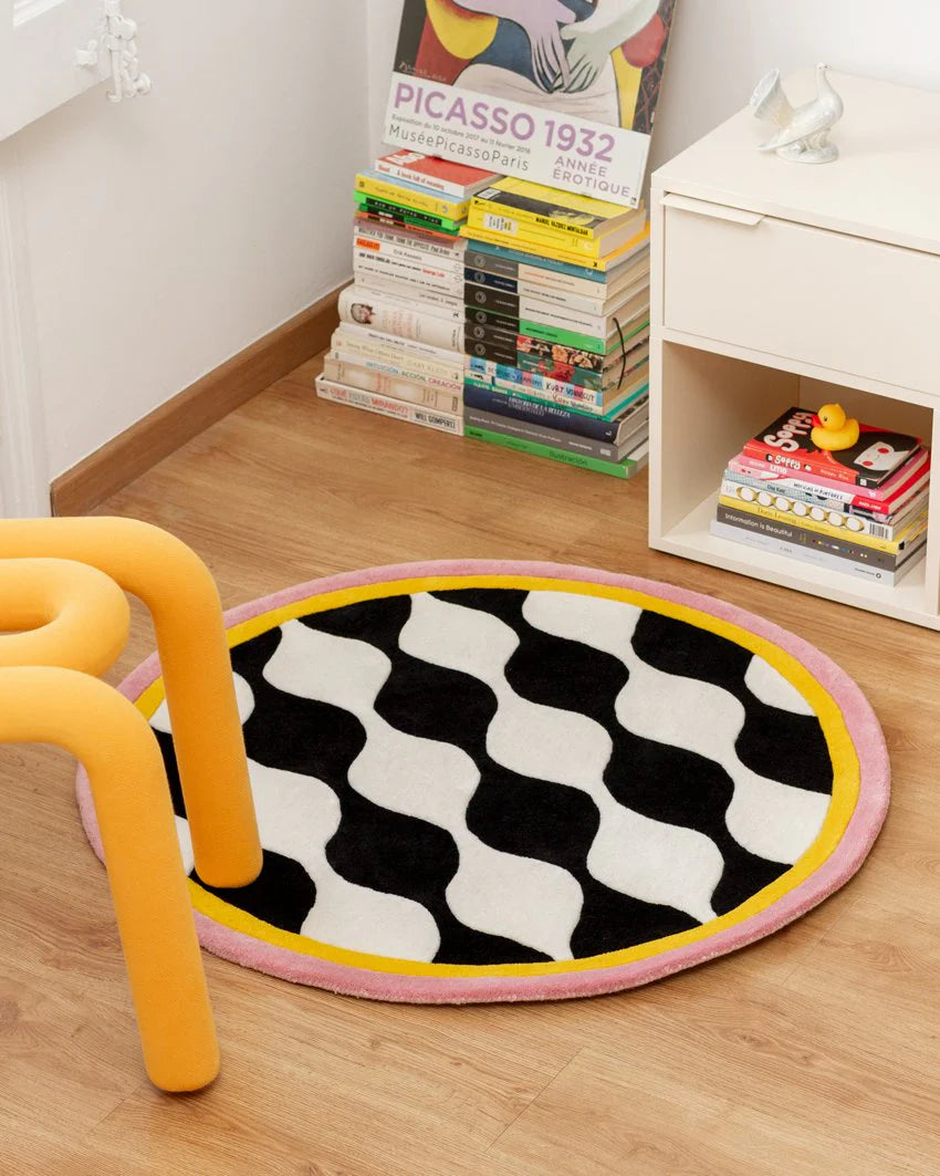 Rankų darbo „Round Chubby“ kilimas: Apvalus, purus ir nepaprastai minkštas kilimas iš 100% Naujosios Zelandijos vilnos. Sukurs jaukią atmosferą bet kuriame kambaryje.