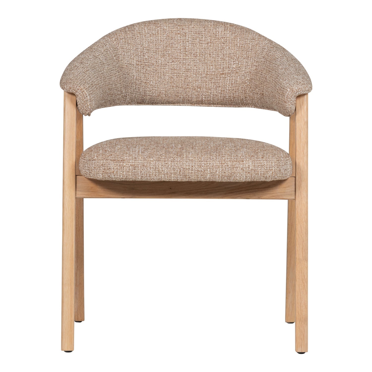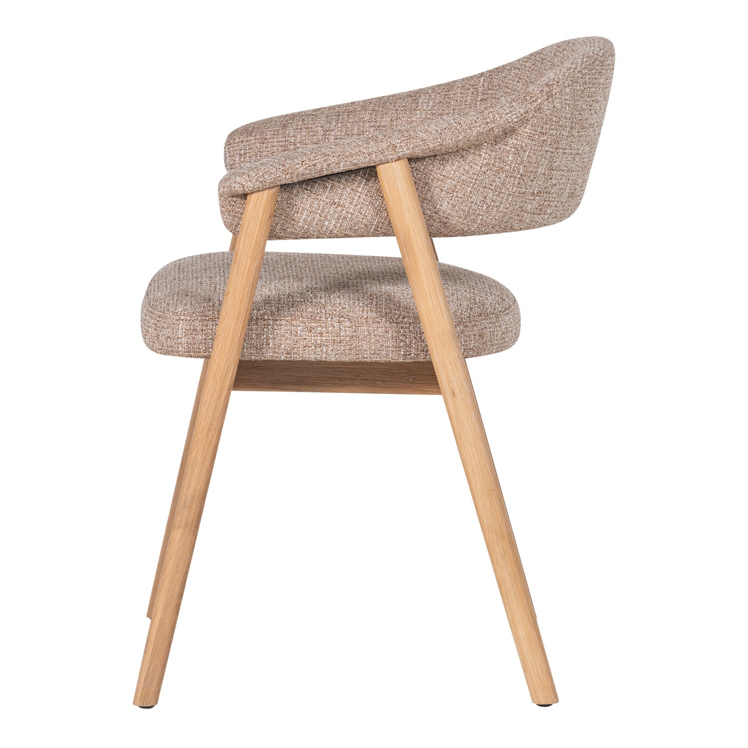 Valgomojo kėdė pagaminta iš FSC sertifikuotos ąžuolo medienos, kurios natūrali tekstūra ir raštas suteikia kiekvienam baldui išskirtinumo. Sėdimoji dalis aptraukta austu audiniu, kuris yra minkštas, patvarus ir tinkamas kasdieniam naudojimui.
