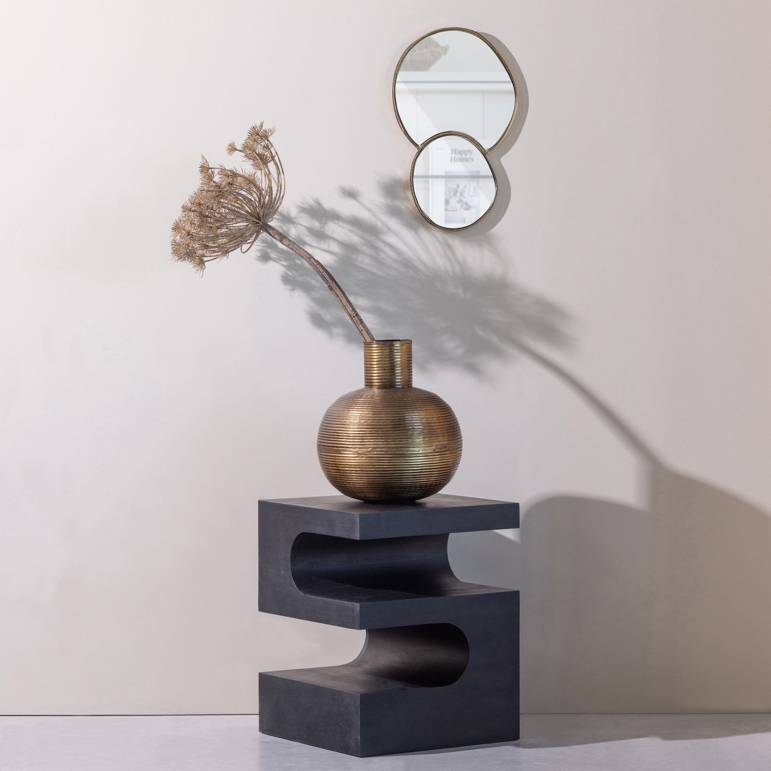 TOMA side table - minimalist and stylish. Playful shapes, made of black mango wood.