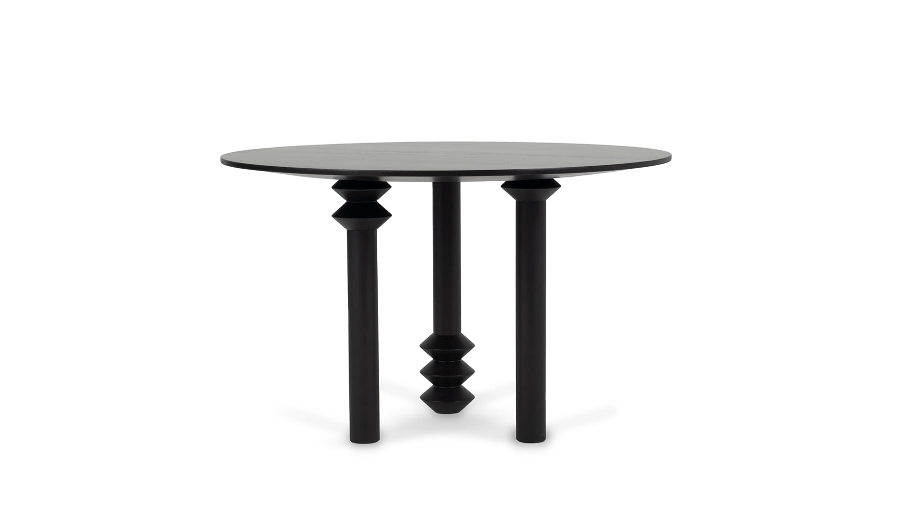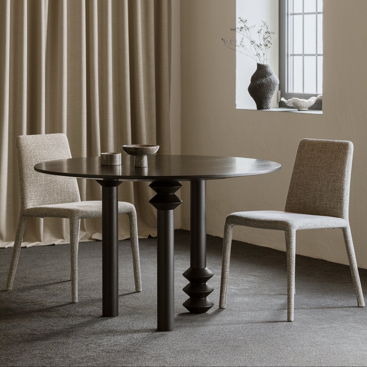 CORNER ROUND DINING TABLE is a modern and elegant choice for your home. Its unique cylindrical legs create a dynamic and contemporary impression, while the high-quality oak top ensures durability.